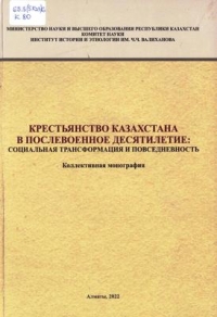 | Крестьянство Казахстана в послевоенное десятилетие: социальная трансформация и повседневность 63.3(5Каз)6 К 80 Крестьянство Казахстана в послевоенное десятилетие: социальная трансформация и повседневность [Текст] : коллект. моногр. / М-во науки и высшего образования Республики Казахстан. Ком. науки. Ин-т истории и этнологии имени Ч. Ч. Валиханова ; [редкол.: З. Е. Кабульдинов [и др.] ; под общ. ред. Козыбаевой М. М.]. – Алматы : Мадияр, 2022. – 335 с. : ил.