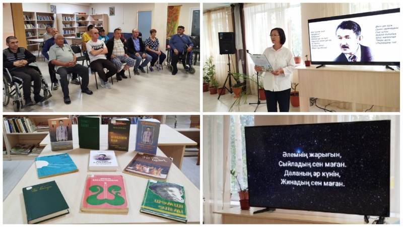 15.08.2025 | | 15 августа сотрудники Костанайской областной универсальной научной библиотеки имени Л. Н. Толстого провели в Костанайском областном реабилитационном центре для лиц с инвалидностью музыкальный вечер «Жылдарым менің, жырларым...