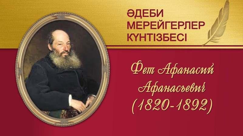 Құрметті пайдаланушылар! Негізгі қорды сақтау бөлімі назарларыңызға орыстың лирик ақыны және аудармашысы, естелікші Афанасий Афанасьевич Феттің туғанына 205 жыл толуына арналған бейнедерекнаманы ұсынады. Қарау үшін сілтеме...