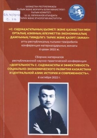 | «С. Сәдуақасұлының қызметі және Қазақстан мен Орталық Азияның әлеуметтік-экономикалық дамуының тиімділігі: тарих және қазіргі заман» атты республикалық ғылыми-тәжірибелік конференция материалдарының жинағы = Сборник материалов республиканской научно-практической конференции «Деятельность С. Садуакасулы и эффективность социально-экономического развития Казахстана и Центральной Азии: история и современность» 63.3(5Қаз)61 С 28 «С. Сәдуақасұлының қызметі және Қазақстан мен Орталық Азияның әлеуметтік-экономикалық дамуының тиімділігі: тарих және қазіргі заман» атты республикалық ғылыми-тәжірибелік конференция материалдарының жинағы = Сборник материалов республиканской научно-практической конференции «Деятельность С. Садуакасулы и эффективность социально-экономического развития Казахстана и Центральной Азии: история и современность» [Мәтін] : 6 қазан 2022 ж. / ҚР Ғылым және жоғарғы білім м-гі, Ғылым комитеті ; Ш. Ш. Уәлиханов ат. Тарих және этнология ин-ты ; [ред. алқа – З. Е. Қабылдинов [т. б.] ; жауапты ред. – Г. К. Мұқанова ; құраст. – З. Б. Байжұманова]. – Алматы : Нұрлы Әлем, 2022. – 240 б.