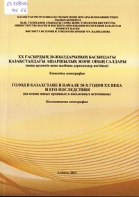 63.3(5Қаз)61 Ж 66XX ғасырдың 20-жылдарының басындағы Қазақстандағы ашаршылық және оның салдары (жаңа архивтік және жазбаша дереккөздер негізінде) [Мәтін] = Голод в Казахстане в начале 20-х годов XX века и его последствия (на основе новых архивных источников) : ұжымдық монография / ҚР Ғылым және жоғары білім м-гі, Ғылым комитеті ; Ш. Ш. Уәлиханов атындағы Тарих және этнология ин-ты, Ғылым комитеті ; [авторлық ұжым: М. М. Қозыбаева т. б.]. – Алматы : Мадияр, 2023. – 263 б. : сурет.