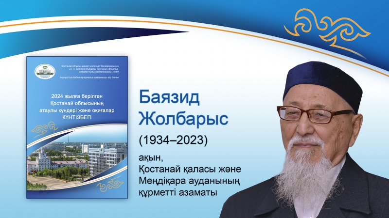 02.05.2024 | | Құрметті пайдаланушылар! Ақпараттық-библиографиялық қамтамасыз ету бөлімі ақын, Қостанай қаласы және Меңдіқара ауданының құрметті азаматы Жолбарыс Баязид туралы бейнедерекнама ұсынады.Қарау үшін сілтеме бойынша өтіңіздер:...