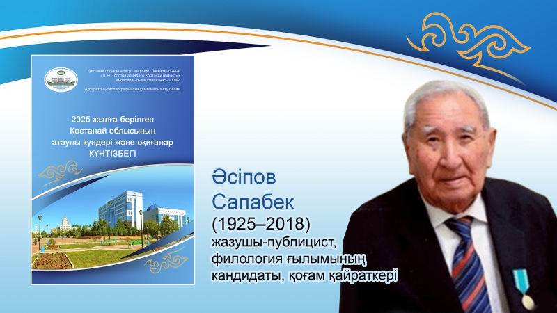 18.11.2025 | | Құрметті пайдаланушылар! Ақпараттық-библиографиялық қамтамасыз ету бөлімі жазушы-публицист, филология ғылымының кандидаты, қоғам қайраткері Әсіпов Сапабек туралы бейнедерекнаманы ұсынады.Қарау үшін сілтеме бойынша өтіңіздер:...