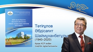 03.03.2025 | | Құрметті оқырмандар! Әмбебап оқу залы Қазақстанның белгілі мемлекет және қоғам қайраткері Жұмабек Тәшеновке арналған «Қазақтың қайсар ұлы – Жұмабек Тәшенов» атты кітап көрмесін дайындады. Көрмеге Жұмабек Ахметұлы Тәшеновтың...