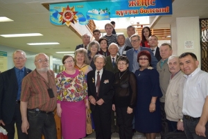 | Әдеби альманахтың тұсаукесері | 24.04.2015 | 23.04 Дүниежүзілік кітап және авторлық құқық күнін Ұлы Отан соғысындағы жеңістің 70 жылдығына арналған «Ұмытылмас ерліктер мен өшпес даңқ» атты онкүндікті «Тобыл толкындары» әдеби альманахының 3-ші шығарылымының тұсаукесерімен жалғастырылды. Аталған альманахқа «Жеңістін алтын алқасы» облыстық әдеби сайысының қатысушыларының үздік деген 103 жұмыстары енген: өлеңдер, поэмалар, шағын проза, публицистика, облыс тұрғындарының Ұлы Отан соғысында ерлік көрсеткен жақындары туралы естеліктер. Көрермендер Ұлы Отан соғысының ардагерін Григория Семенович Олейникті жылы қарсы алды. Оның «Искупление» атты шығармасы «Говорят ветераны войны» атты рубрикада енгізілген. Ардагерді құттықтауға кеш қолдаушысы Банкцентркредит өкілі Сергей Иванович Ватчалов естелік сыйлығын тарту етті. Тұсаукесерде құрметті ардагерлер, аталған альманахқа жұмыстары енген қостанайлық авторлар, жоғары оқу орнының мұғалімдері мен студенттері қатысты. Авторлардың орындауында өлеңдер оқылып, облыстық филармония әншілерінің Жеңіс жайлы өлеңдері шырқалды. Редакция алқасының мүшелеріне: А.Шаяхметке, Н.Кочинге, Г.Бердалиноваға, А.Сусловаға, Н.Кұлабаевқа, Ю.Бондаренкоға, А. Маудановқа, В.Лоскутниковқа, А. Денисовке, В.Варенцовқа, А.Олексюкке, Ж.Жүсіпбековке әдеби сайысқа түскен жұмыстармен танысып, іріктеп, үздік деген жұмыстарды альманахқа енгізген ерен еңбектері үшін ерекше ықылыс білдіріліп, шай үстінде естелік сыйлықтар тарту етілді. | | | | Кері қарай |