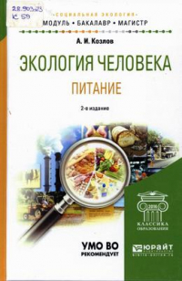 28.903я73 К 59 Козлов, А. И. Экология человека. Питание [Текст] : учеб. пособие для студ. вузов / А. И. Козлов. – 2-е изд., испр. и доп. – Москва : Юрайт, 2021. – 237 с. : ил. – (Высшее образование). Кн. доступна на образ. платформе "Юрайт" urait.ru, а также в мобил. приложении "Юрайт. Библиотека"