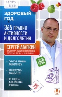| Агапкин, С. Н. Здоровый год 51.204 А 23 Агапкин, С. Н. Здоровый год [Текст] : 365 правил активности и долголетия / С. Н. Агапкин. – Москва : Эксмо, 2019. – 416 с. – (Агапкин Сергей. О самом главном для здоровья).