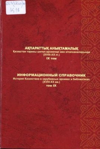 Основу IX тома информационного справочника «История Казахстана в зарубежных архивах и библиотеках» составляет перечень приобретенных документов (копии) из фондов архивов таких стран, как Белоруссия, Кыргызстан, Украина, Узбекистан, Россия, Таджикистан. Документы охватывают период с XVIII по XX вв.