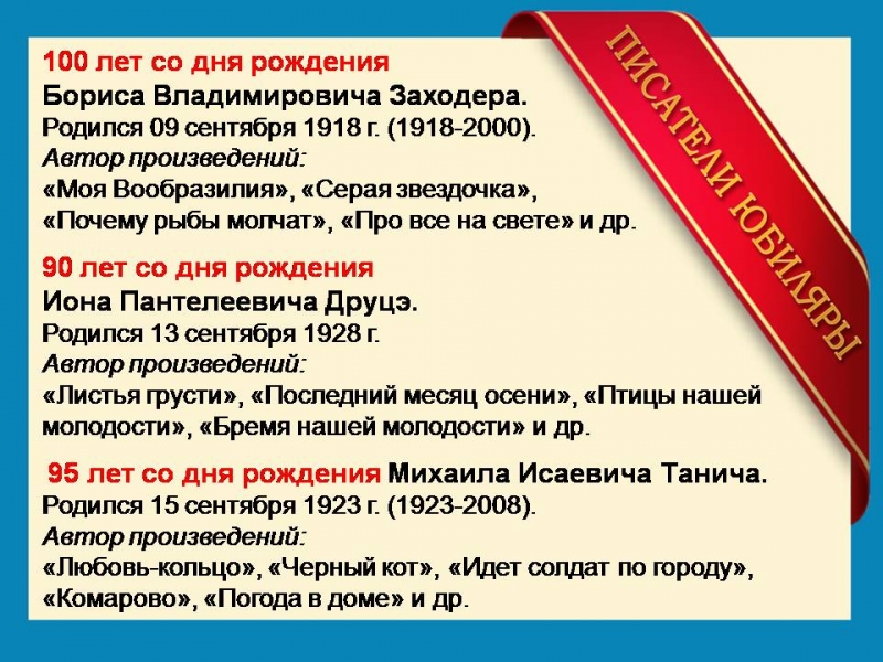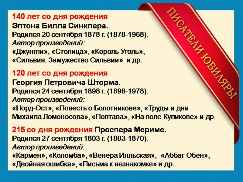 Литературные юбилеи сентября