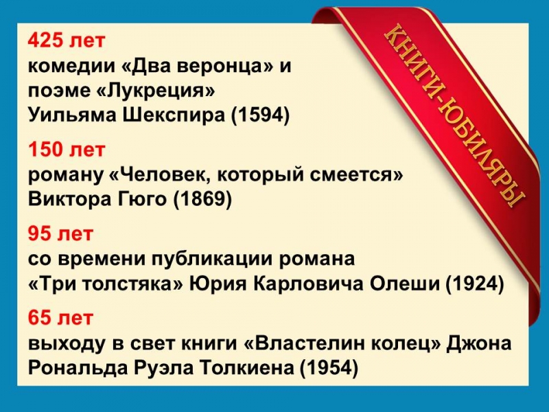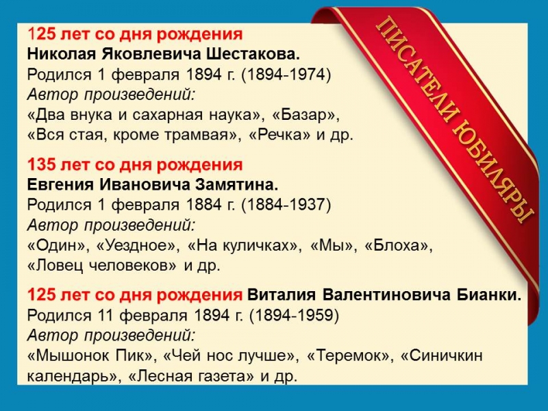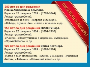 | Литературные юбилеи февраля
