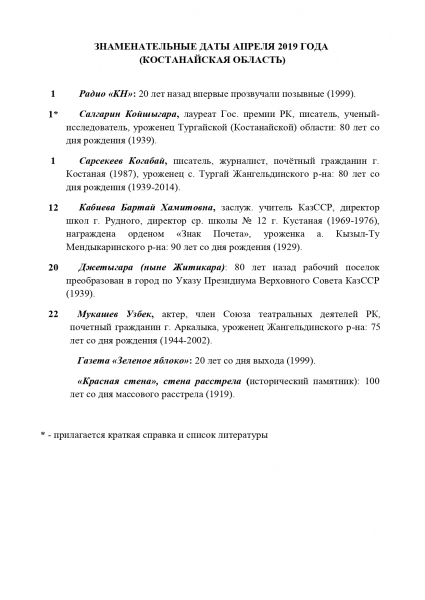 Уважаемые читатели представляем вашему вниманию юбилейные даты апреля.