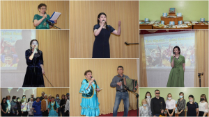 Всех пришедших на праздник ожидала концертная программа. Участники разных возрастов, среди которых были и известные солистки Наталья Пикулева и Валентина Крайчинская, исполнили песни на казахском, русском, украинском, польском, татарском языках. Удивительно органично вплелась в программу балалайка, на которой Евгением Кондратенко была исполнена русская народная песня «Под горою калина». Украшением вечера стало стихотворение «Рай земной», прочитанное Лидией Харченко.