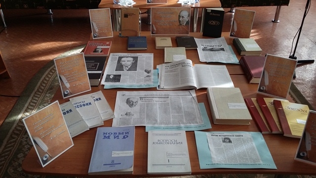 была оформлена книжная выставка, на которой были представлены основные работы М. Бахтина, среди которых «Творчество
