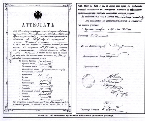 рекомендовало направить его в Уральское войсковое реальное училище.
