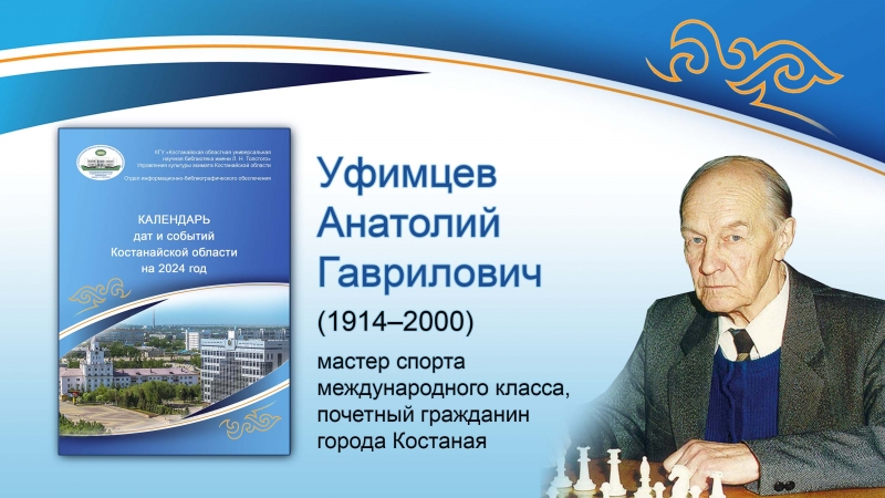 14.05.2024 | | Уважаемые читатели! Отдел информационно-библиографического обеспечения представляет видеодосье о мастере спорта международного класса, почетном гражданине города Костаная Анатолие Гавриловиче Уфимцеве.Для просмотра перейдите...