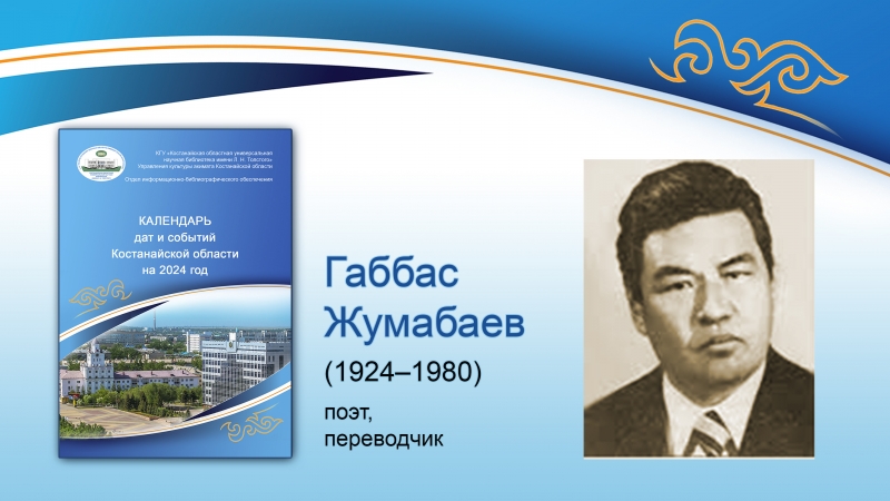 03.05.2024 | | Отдел краеведческой литературы предлагает вашему вниманию видеоролик «Жарқын тағдырлы азамат», посвященный 100-летию со дня рождения поэта, переводчика и журналиста Габбаса Жумабаева. Габбас Жумабаев оставил после себя значимое...