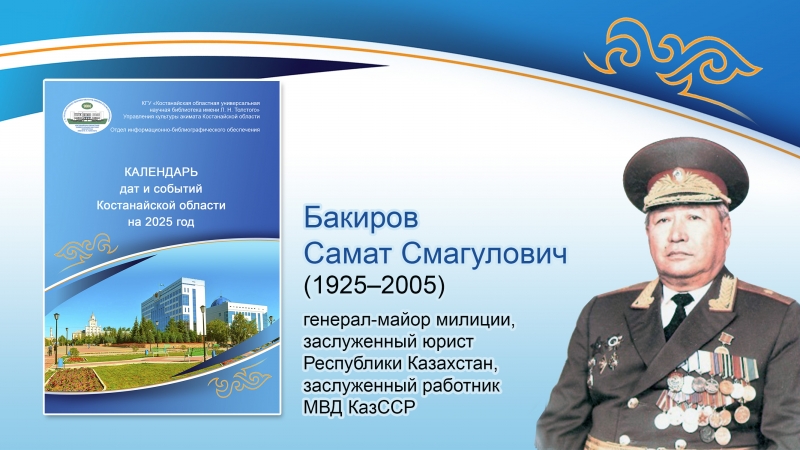 17.09.2025 | | Уважаемые читатели! Отдел информационно-библиографического обеспечения представляет видеодосье о генерале-майоре милиции, заслуженном юристе Рспублики Казахстан, заслуженном работнике МВД КазССР Самате Смагуловиче Бакирове.Для...