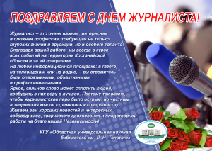 01.07.2021 | | Уважаемые пользователи!Отдел информационно-библиографического обеспечения Костанайской областной универсальной научной библиотеки им. Л. Н. Толстого представляет видеообзор знаменательных и памятных дат Календаря дат и событий...