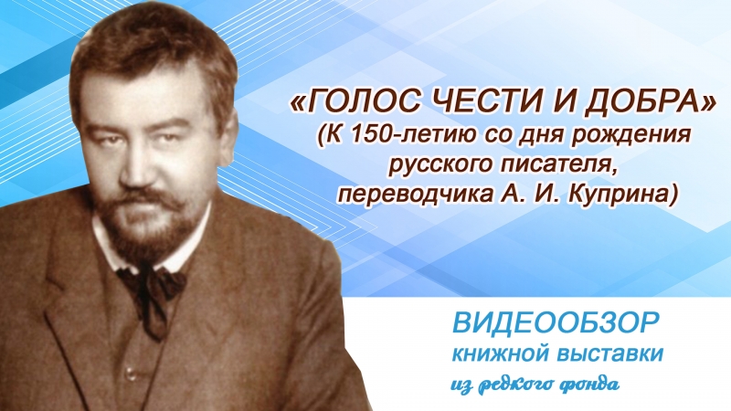 Уважаемые читатели, предлагаем Вам обзор виртуальной выставки, посвященной   150-летию со дня рождения русского писателя, переводчика А. И. Куприна. Большой художник, талантливый мастер литературного языка, Куприн...