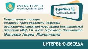 17.11.2025 | | В рамках проекта Qoğam Space «Сенімді қоғам» в онлайн-формате состоялась интервью-беседа с подполковником полиции, старшим преподавателем кафедры уголовно-исполнительного права Костанайской академии МВД РК имени Шракбека...