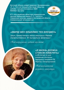 23.12.2024 | | Универсальный читальный зал подготовил библиографический указатель литературы, посвященный 85-летию со дня рождения Фаризы Онгарсыновой – поэтессы, народного писателя Республики Казахстан, общественного деятеля, автора целого...