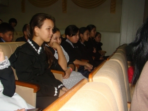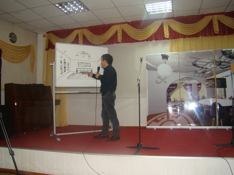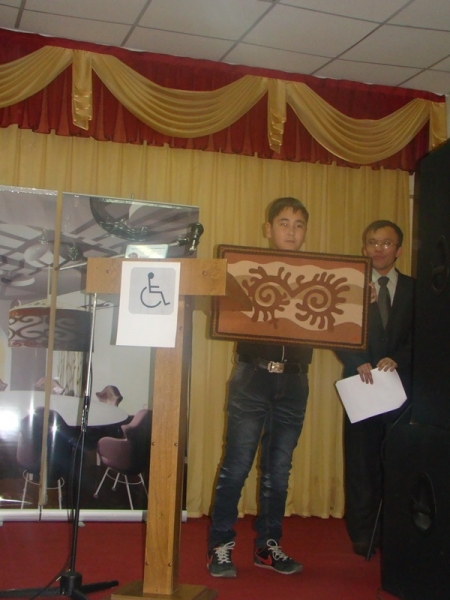 В фойе перед актовым залом была подготовлена выставка картин дизайнера-художника Арлана Анкауова, который провел мастер-класс для присутствующей молодежи, желающих обучаться декоративно-прикладному искусству пригласил к себе в студию. Со словами благодарности выступил один из его учеников.