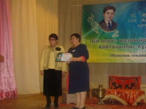 | Областной семинар «Би ағаң – қазақ әдебиетінің қайталанбас құдіреті» | 29.10.2014 | 29 октября 2014 года на базе Тарановской ЦРБ был проведён областной семинар «Би ағаң – қазақ әдебиетінің қайталанбас құдіреті», посвященный 120-летнему юбилею нашего земляка, писателя, публициста и общественного деятеля Беимбета Майлина. В семинаре приняли участие библиотекари государственных библиотек области. Семинар начался с торжественной церемонии возложения цветов к бюсту Беимбета Майлина и посвящения участникам семинара. Затем была организована экскурсия в районный историко-краеведческий музей имени Беимбета Майлина. Здесь выделен большой раздел экспонатов и материалов, посвящённых жизни и творчеству Б.Майлина. В фойе районного ДК сотрудниками районной ЦБС и ОУНБ им. Л.Н.Толстого была организована книжная выставка «Қалам майталманы Бейімбет Майлин – 120 ж.». Гости семинара с большим интересом знакомились с материалами выставки, послушали подготовленный обзор по представленной на выставке литературе. Затем в зале ДК состоялось торжественное открытие семинара, где с приветственным словом к участникам обратился Аккулов Дидар Мухамеджанович, заместитель акима по социальным вопросам Тарановского района. От управления культуры акимата Костанайской области гостей семинара поприветствовала главный специалист Олжабаева Роза Тулешевна. Много интересного и нового о жизни и творчестве нашего замечательного земляка узнали участники семинара из выступлений докладчиков. Поэтесса Бердалинова Гайнижамал Саймановна в своем сообщении «Бейімбет Майлин өмірінің қызықты деректері», рассказала об интересных фактах из биографии писателя, о его журналистской деятельности в Костанайской областной газете «Ауыл», приемницей которой является современная газета «Қостанай таңы». С анализом творчества Беимбета Майлина «Дара туған Бейімбет» выступилаТулегенова Шынар Исламбековна, преподаватель кафедры теории языка и литературы КГУ им. А.Байтурсынова. Учитель казахского языка и литературы Тобольской средней школы Тарановского района Касымова Улбике Байдрахмановна, родственница Беимбета Майлина и исследователь его творчества выступила по теме: «Би-аға мәңгі есімізде...». О комплектовании фондов областного историко-краеведческого музея документами о Беимбете Майлине рассказала Оташева Назима Куанышбаевна, специалист отдела научно-методической работы. Много положительных эмоций вызвал отрывок из спектакля по пьесе Беимбета Майлина «Келін мен шешей», показанный артистами Тарановского народного театра (режиссер Луценко Нина Владимировна). В рамках литературной дискуссии «Б. Майлиннің шығармалары – өмірдің көркем шежіресі», которую провела старший консультант отдела развития библиотек ОУНБ им. Л.Н. Толстого Рахымбекова Айжан Султановна состоялся обмен опытом работы по популяризации творчества Беимбета Майлина. В заключение семинара состоялось подведение итогов областного конкурса блогов, посвященного 120-летию Б. Майлина и награждение победителей (Лисаковская ЦГБ, Тарановская и Житикаринская ЦРБ). Работу семинара оперативно освещал корреспондент газеты «Қостанай таңы» Нурболат Мешитбаев. | | | | Назад |