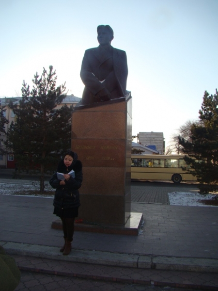 В этом году в нашей области широко отмечали 120-летний юбилей нашего земляка, известного казахстанского писателя Беймбета Майлина. В течение года были проведены ряд массовых мероприятий, посвященных этой дате. Одним из них стал флеш-моб к памятнику Беймбета Майлина, воздвигнутый 20 лет назад, в 100-летний юбилей писателя. 20.11 на привокзальной площади у памятника собрались известные костанайские авторы: Г.Ахметчин, С.Оспанов, Н.Мукатов, А.Шаяхмет, К,Орманов, Г.Бердалинова, Н.Кулабаев, А.Мауданов, студенческая молодежь и представители СМИ. В своем выступлении Гумар Гарифович отметил, что было приятно на съезде союза писателей РК, посвященной 80-летию писательской организации РК услышать о том, что на родине Б.Майлина в юбилейный год проводятся такие масштабные мероприятия, призвал присутствующую молодежь читать произведения юбиляра. В своих воспоминаниях Серикбай Оспанов рассказал о встрече с женой Б.Майлина Кунжамал. Ганижамал Саймановна поделилась впечатлениями об областном семинаре библиотечных работников, прошедшем на родине писателя в Тарановском районе. А.Шаяхмет в интервью СМИ обратил внимание на роль Б. Майлина в казахской литературе. У памятника прозвучали стихи поэта, были возложены цветы.