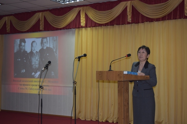 | Малик Габдуллин. Имя батыра в вечной памяти | 24.04.2015 | В преддверии 70-летия Победы в Великой Отечественной войне и 100-летней годовщины со дня рождения Героя Советского Союза, учёного-педагога, академика, писателя Малика Габдуллина состоялся литературно-творческий вечер «Батырлардың тұйғыны, ғалымдардың жүйрігі» Для всех казахстанцев легендарный комиссар-панфиловец Малик Габдуллин стал символом несгибаемой силы и смелости народного духа. Президент республики Нурсултан Назарбаев как-то отметил, что на примере именно таких людей надо воспитывать подрастающее поколение. Мероприятие проведено с целью патриотического воспитания подрастающего поколения в духе преданности своей родине, знакомства с творчеством академика, популяризации его духовного наследия. Как известно, Малик Габдуллин - автор таких книг, как «Мои фронтовые друзья» (1947); «Золотая звезда» (1948); «Фронтовые очерки» (1959). Результат его многолетних исследований - монография «Фольклор казахского народа». Многим он знаком как автор ряда учебников для школ и вузов, монографий, учебных пособий. Также, он принял активное участие в создании ряда коллективных трудов, изданных Академией Наук Казахской ССР: «История казахской литературы», «Казахский героический эпос». В программе вечера приняли участие: председатель городского совета ветеранов г. Костаная, ветеран Великой Отечественной войны М. И. Подоляков, профессор кафедры социально-гуманитарных дисциплин Академии МВД Республики Казахстан А.В. Видершпан, учитель высшей квалификации высшей категории, лучший историк области по итогам ЕНТ – 2007 года, автор учебного пособия по истории Казахстана для подготовки к ПГК и ЕНТ Г.Ж. Манзул, кандидат исторических наук, доцент кафедры истории Казахстана Костанайского государственного педагогического института У.И. Есенов. Организатором мероприятия, отделом абонементов, были приглашены преподаватели вузов и сузов города, студенческая молодежь, читатели библиотеки, СМИ. По специальному приглашению мероприятие посетили ветераны Великой Отечественной войны. Вниманию посетителей была предложена одноименная книжная выставка. | | | | Назад |