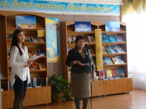 | Презентация книжной выставки | 22.01.2015 | Президент Республики Казахстан Нурсултан Назарбаев инициировал празднование 550 летие основания казахского ханства. 21.01. в гостиной презентацией книжной выставки «Государственность, идущая через века» открыли празднование этой знаменательной даты. На презентацию были приглашены молодежь, директора городских и районных библиотек, представители СМИ. Ведущие познакомили присутствующих с экспозицией, где представлены более 200 книг о наиболее значительных событиях в истории нашего народа со дня основания казахского ханство до суверенной Республики Казахстан. Были показаны фрагменты: из интервью Нурсултана Абишевича с журналистами ведущих СМИ Казахстана о праздновании знаменательной даты и анимационный фильм в формате 3D «Қазақ елі», снятый по мотивам книги Главы государства «В потоке истории». В презентации приняли участие магистры истории, преподаватели Костанайского государственного педагогического института Куаныш Абильмаликов и Рауан Байдалы, которые доступно изложили важность празднования даты и ее историческое обоснование. | | | | Назад |