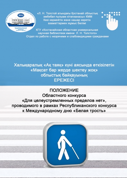 | Конкурсы 06.06.2023 | | ПоложениеОбластного конкурса «Для целеустремленных пределов нет», проводимого в рамках Республиканского конкурса к Международному дню «Белая трость» Общая частьНастоящее Положение разработано с целью организации и проведения...