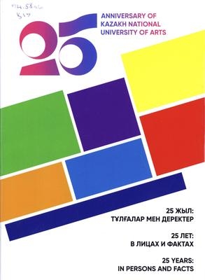 Қазақ ұлттық өнер университетінің 25 жылдығына орайластыра шығарылған кітап-альбомда оқу орнының даму тарихы қамтылған. Бұл – ұлт руханиятын биік дәрежеге көтеру барысында болашақ, шығармашылық, зиялы қауым өкілдерін дайындайтын оқу ордасының тіршілігін, осы жолда еңбектеніп жүрген ұстаздардың сүбелі үлесін, шығармашылық, ғылым, білім саласында атқарылып жатқан еңбек нәтижелері мен танымал түлектер жетістіктерін таныту мақсатында дайындалған кітап. Басылымда ҚазҰӨУ қорының және университет оқытушыларының жеке мұрағаттарынан жинақталған құжаттар мен фотоматериалдар пайдаланылған. Книга, выпущенная к 25-летию Казахского национального университета искусств, содержит историю развития учебного заведения. Это книга подготовлена с целью популяризации достижений выдающихся выпускников и большого вклада педагогов в области творчества, науки, образования, а также жизнедеятельности вуза, готовящего будущих представителей творческой элиты, нацеленной на подъем уровня духовной культуры нации. В издании использованы документы и фотоматериалы, собранные из личных архивов преподавателей университета и Фонда КазНУИ. | | |