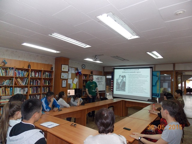 28.05.2015 | | 0n the May 28th at 16.00, on the basis of IRC "American Corner" was a meeting on the theme: "People, work, exploitation", on which were raised the following questions: human exploitation, forced labor, sexual slavery, debt...