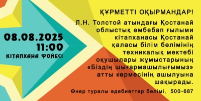 Құрметті пайдаланушылар! Негізгі қорды сақтау бөлімі назарларыңызға орыстың лирик ақыны және аудармашысы, естелікші Афанасий Афанасьевич Феттің туғанына 205 жыл толуына арналған бейнедерекнаманы ұсынады. Қарау үшін сілтеме...