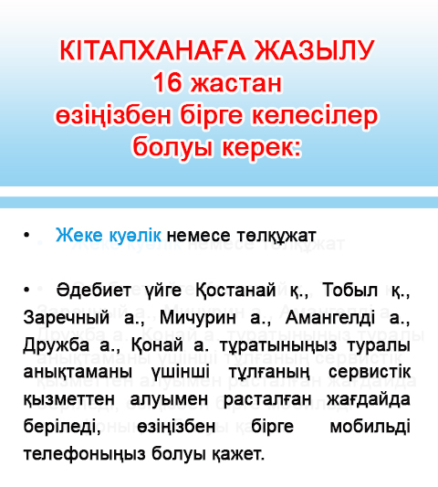 Дүйсенбі-Жұма – 9.00 – 20.00 Жексенбі – 9.00 – 17.00 Сенбі мен айдың соңғы жұмыс күні – демалыс күндері |