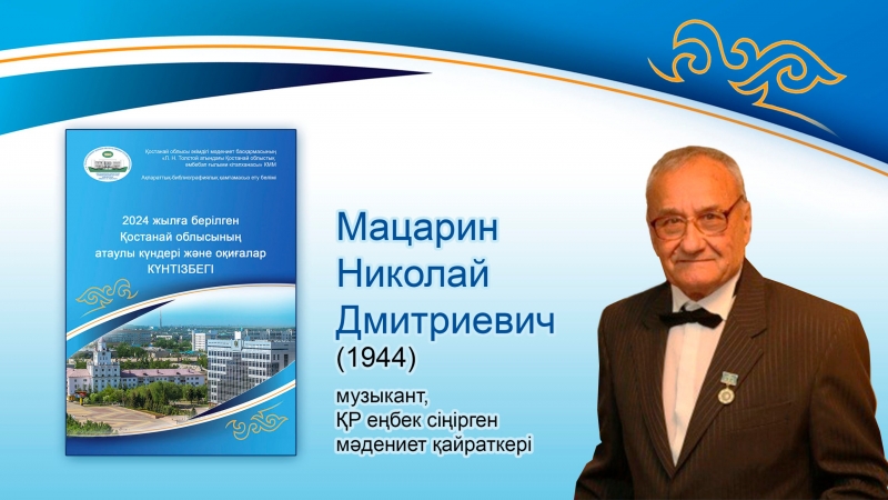 Құрметті пайдаланушылар! Ақпараттық-библиографиялық қамтамасыз ету бөлімі музыкант, ҚР еңбек сіңірген мәдениет қайраткері Николай Дмитриевич Мацарин туралы бейнедерекнама ұсынады.
