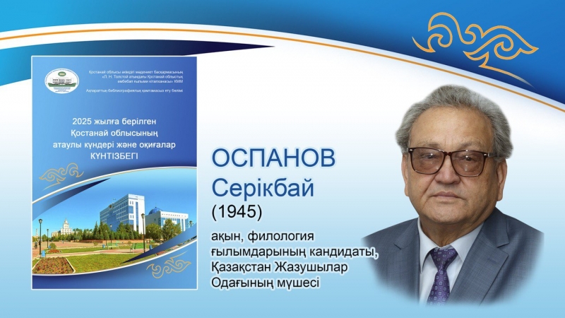 01.04.2025 | | Құрметті пайдаланушылар! Ақпараттық-библиографиялық қамтамасыз ету бөлімі ақын, филология ғылымдарының кандидаты, Қазақстан Жазушылар Одағының мүшесі Серікбай Оспанов туралы бейнедерекнама ұсынады. Қарау үшін сілтеме бойынша...