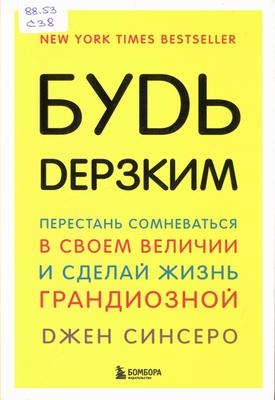 | Синсеро, Д. Будь дерзким! Перестань сомневаться в своем величии и сделай жизнь грандиозной 88.53 С 38 Синсеро, Д. Будь дерзким! Перестань сомневаться в своем величии и сделай жизнь грандиозной [Текст] / Д. Синсеро ; [пер. с англ. Э. И. Мельник]. – Москва : Эксмо, 2023. – 318 с. – (Книги, которые нужно прочитать до 35 лет).