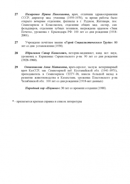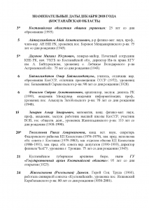 | Календарь знаменательных дат Костанайской области 2018 года.