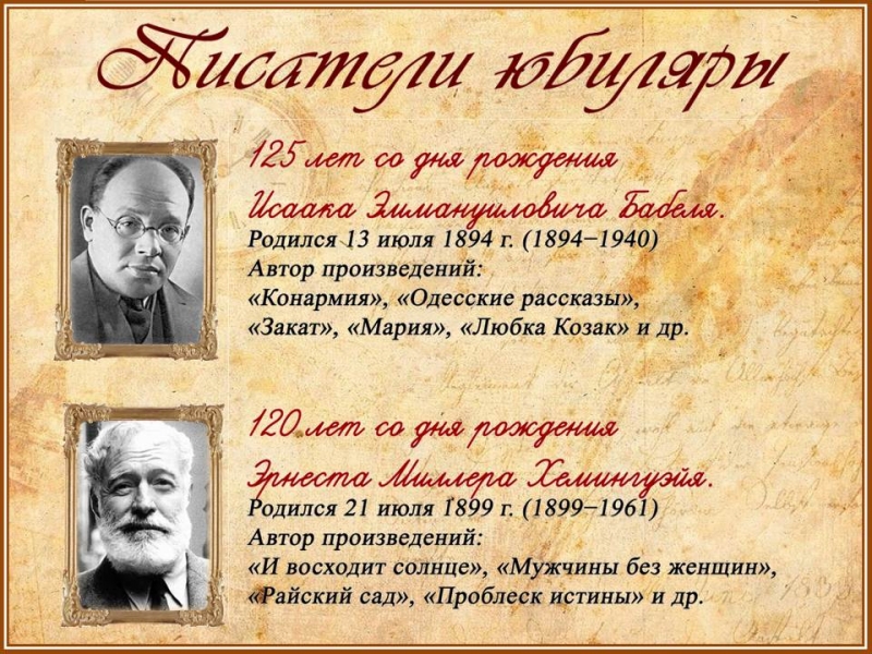 Литературные юбилеи июля