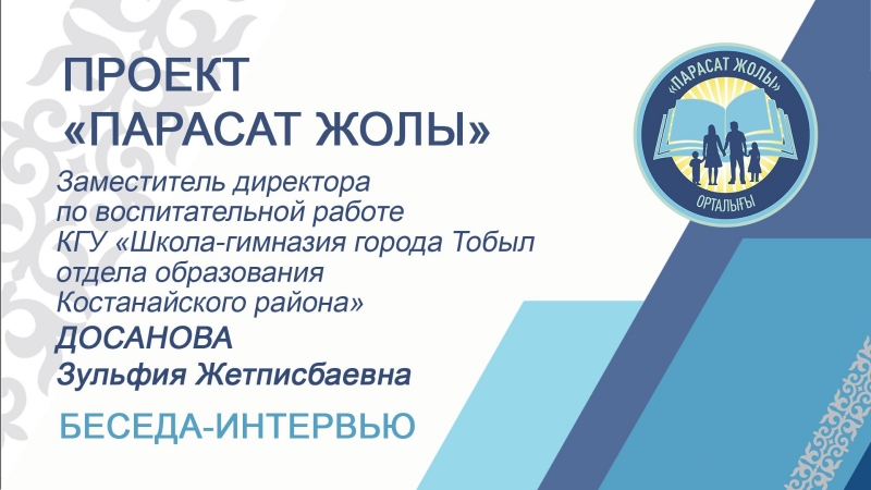 Уважаемые пользователи! В рамках реализации специального проекта «Парасат жолы» отдел по работе с незрячими и слабовидящими гражданами КГУ «Костанайская ОУНБ имени Л. Н. Толстого» представляет видеобеседу о формировании принципов честности, добропорядочности, справедливости с заместителем директора по воспитательной работе КГУ «Школа-гимназия города Тобыл отдела образования Костанайского района» Управления образования акимата Костанайской области Досановой Зульфией Жетписбаевной.