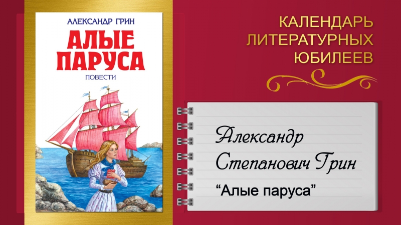 Уважаемые пользователи! Отдел хранения основного фонда представляет вашему вниманию видеодосье, посвященное 100-летию повести Александра Степановича Грина «Алые паруса».