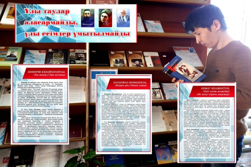 читальным залом организована книжная выставка «Ұлы таулар аласармайды, ұлы адамдар