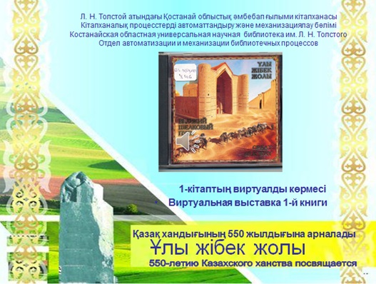 | Великий шелковый путь. Наследие веков – потомкам. 550-летию Казахского ханства посвящается: Виртуальная выставка 1-й книги | |